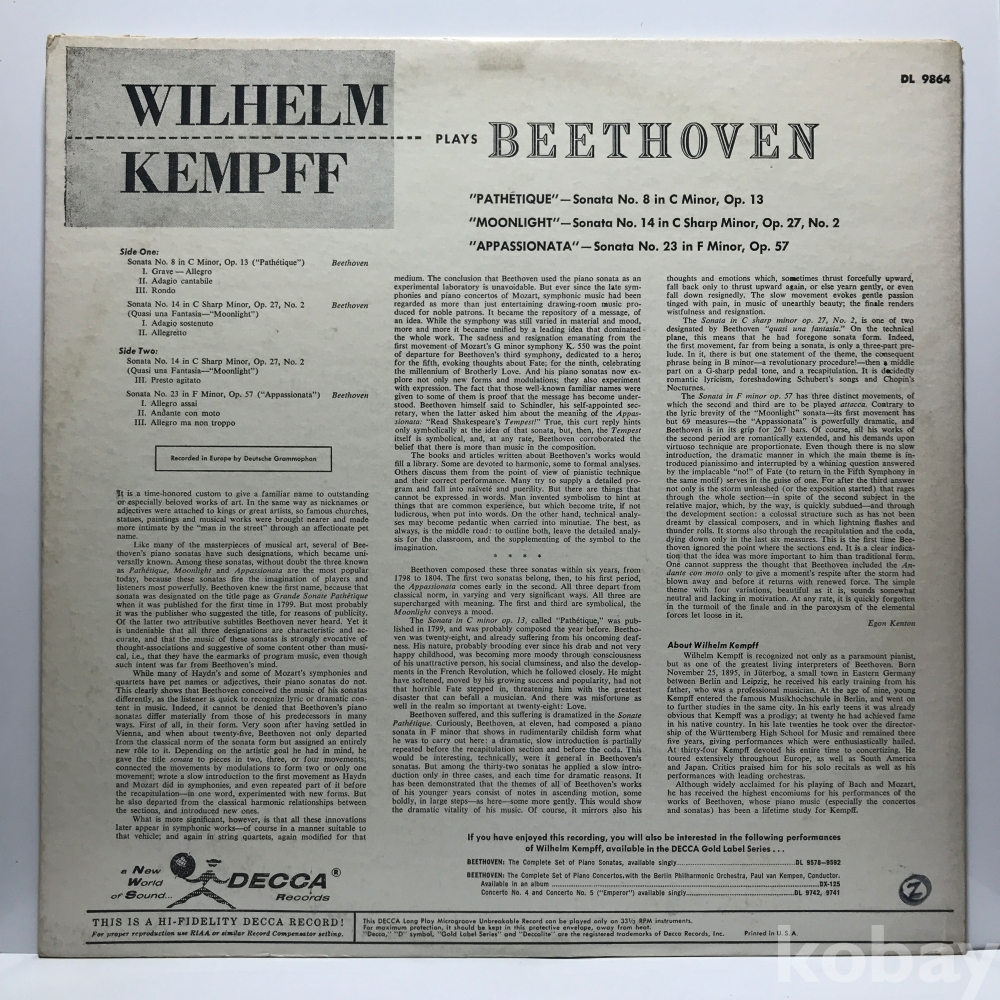 LP 160-74 WILHELM KEMPFF PLAYS BEETHOVEN 수입 자켓 EX 알판 EX