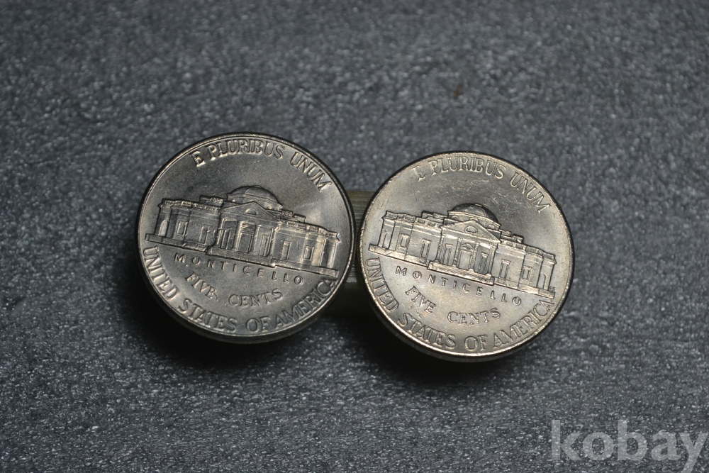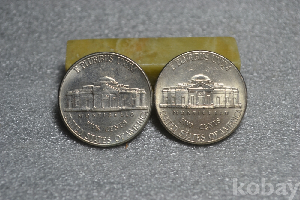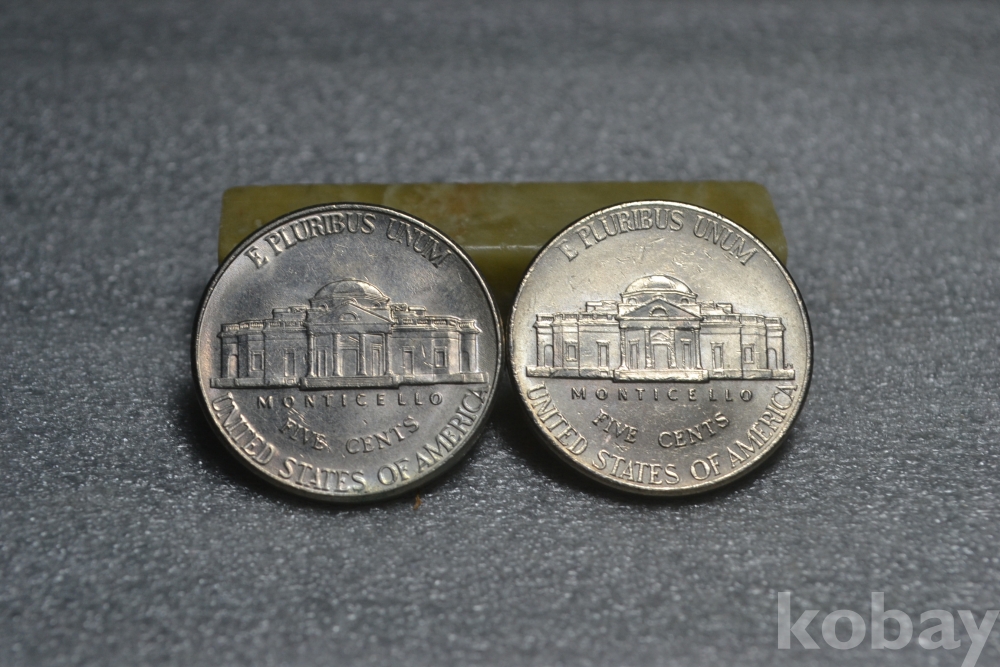 " 광택이 살아있는 미사용품(구디자인, 신디자인 2점 일괄~) ".. " 2000년도 (D) + 2006년도 (D) 아메리카 미국 제퍼슨 5센트 ".. 21 mm 지름 ~ 오래된 2000년도, 2006년도 발행 미국 제퍼슨 5센트 주화 동전 / 깨끗하고 좋은 보존상태~
