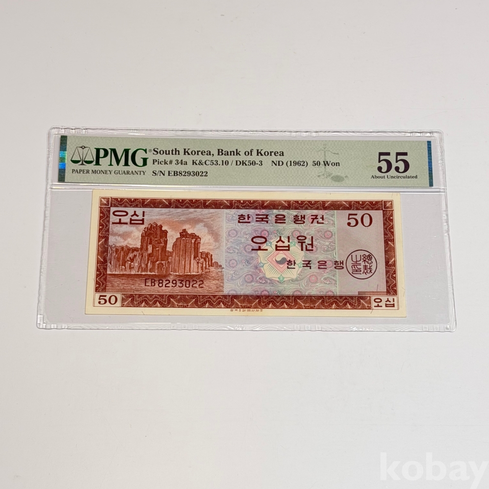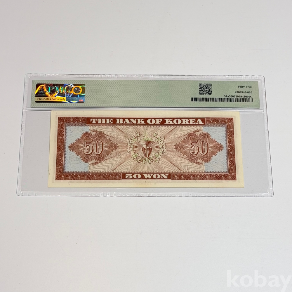 한국은행 50원/ 영제 오십원 EB기호 PMG 55등급