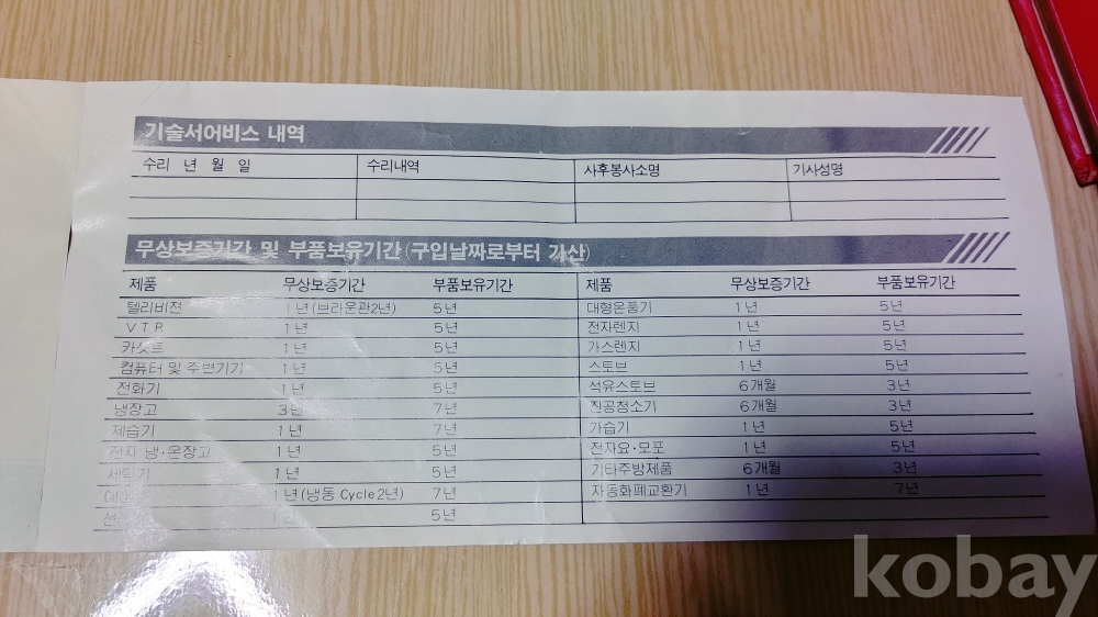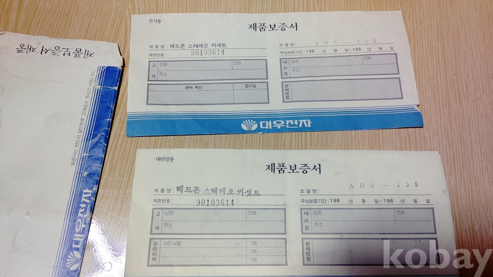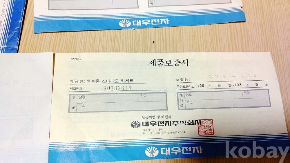 카세트는 오래전 고장으로 폐기했고 보증서만 짐정리하다 나왔습니다.