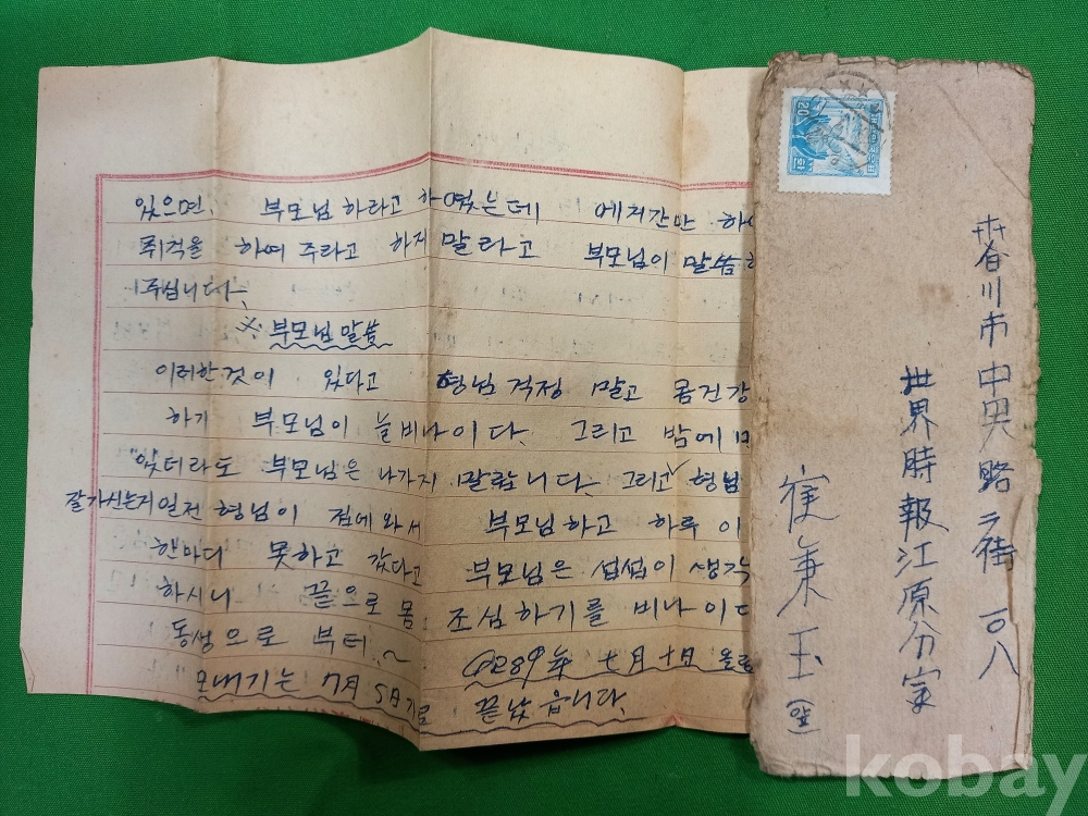 봉투 주변 찢김 있으며, 세월의 흔적 있으나 상태 양호합니다