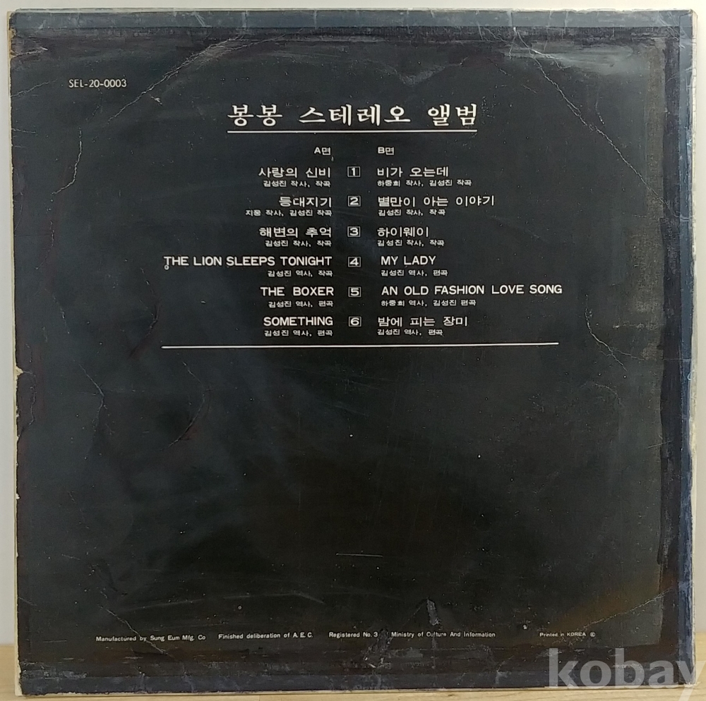 음반 깨끗한편인데 1면 두번째 곡에서 틱 잡음 몇번 납니다.