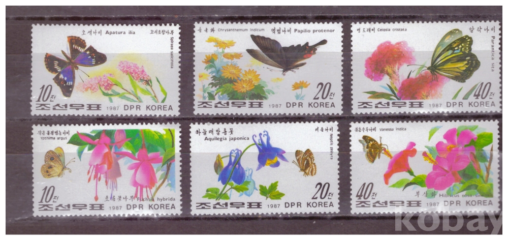 (곤충, 식물) 북한 1987.3.12 나비와 꽃 6완 MNH
