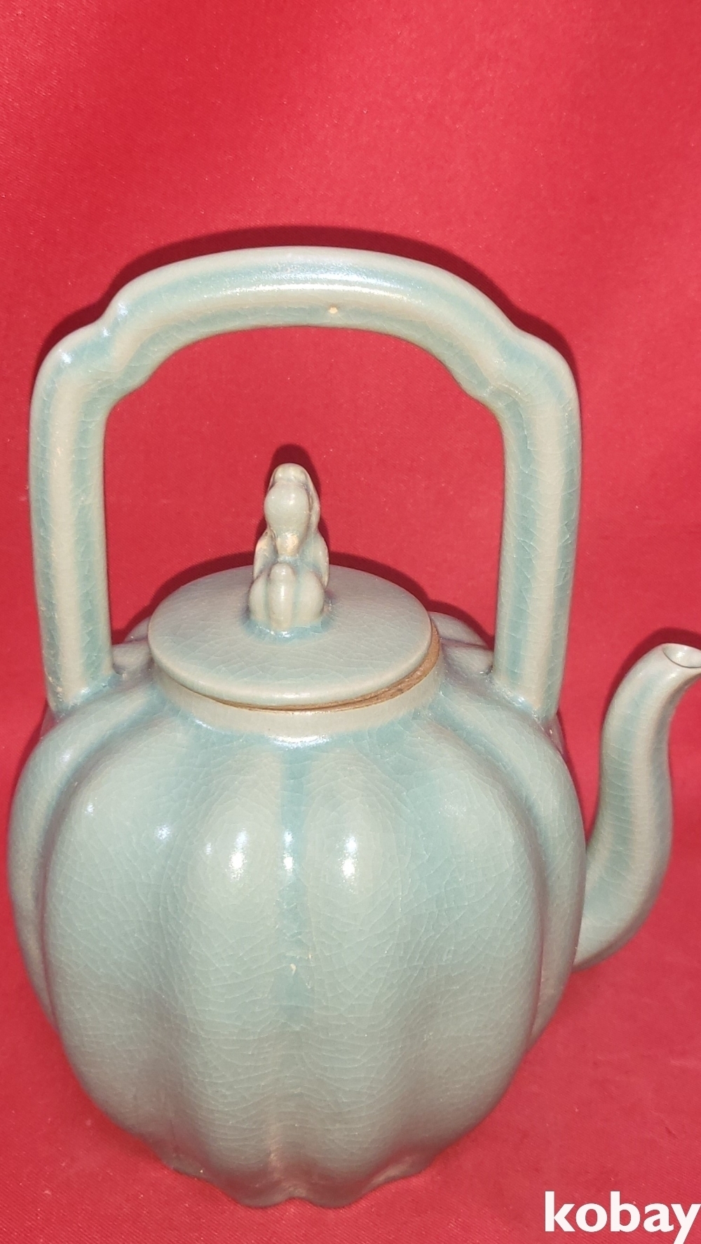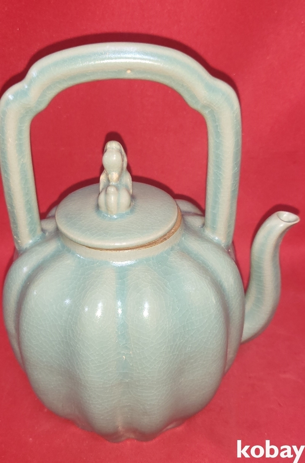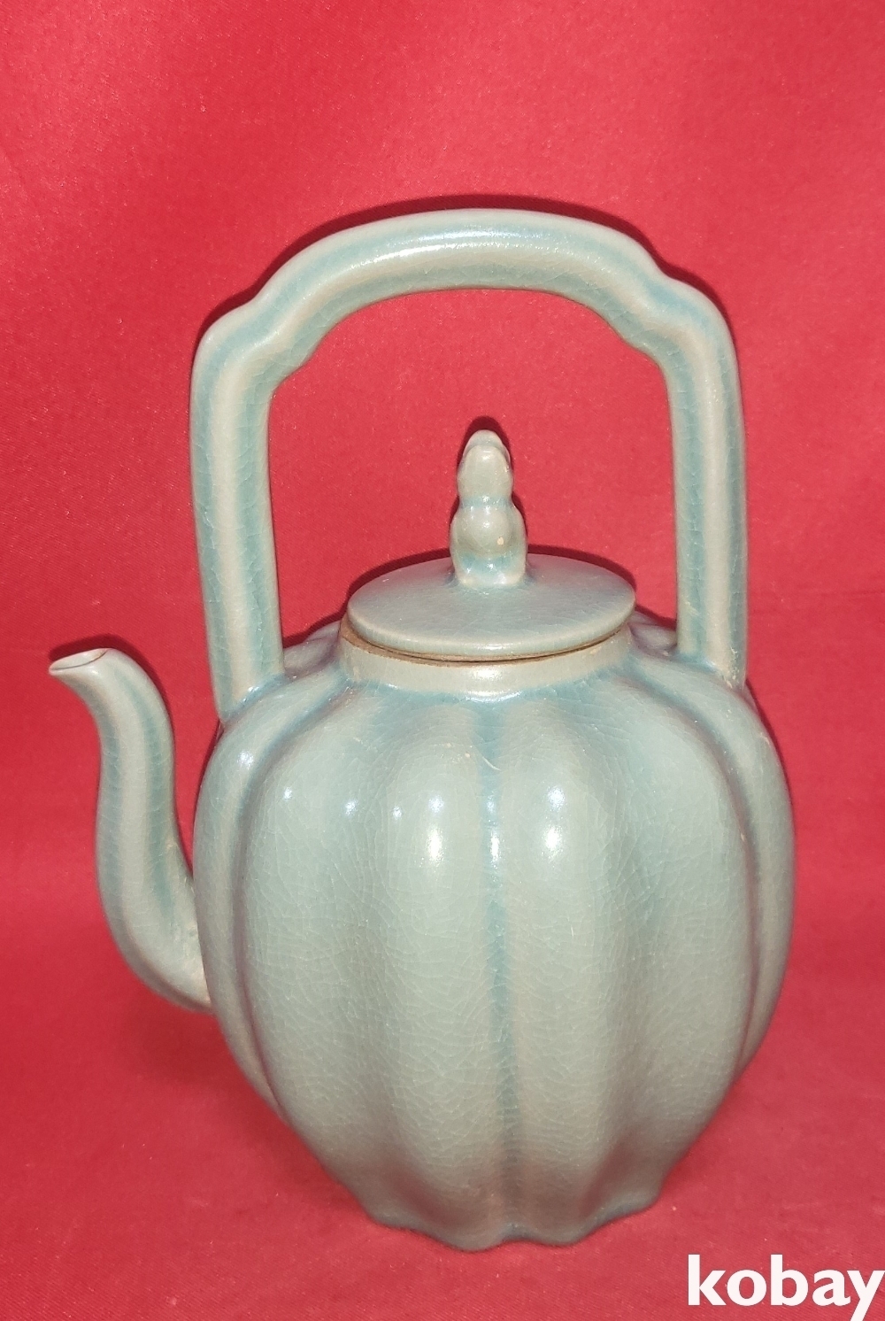 비색청자 과형(果形) 12곡(谷) 주전자입니다