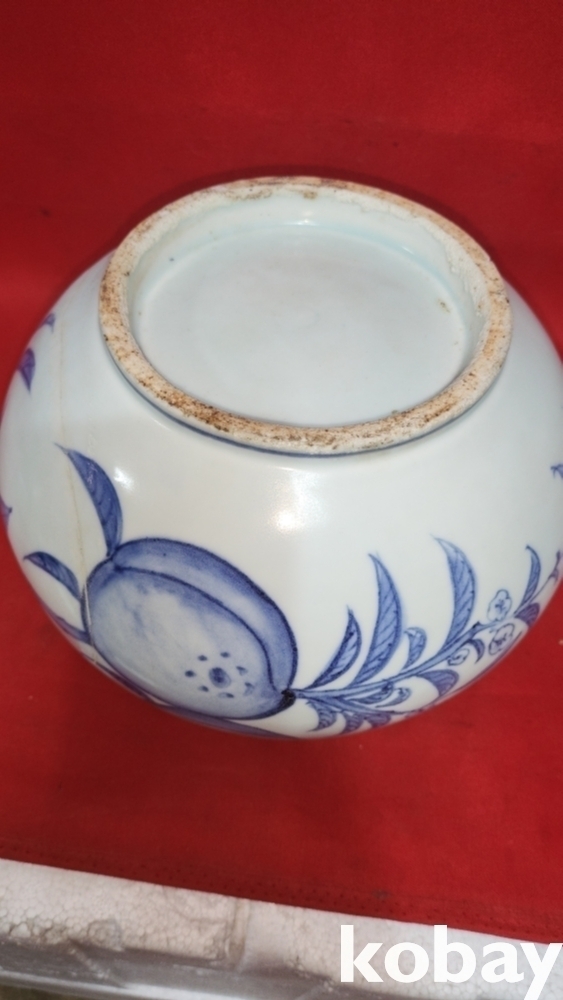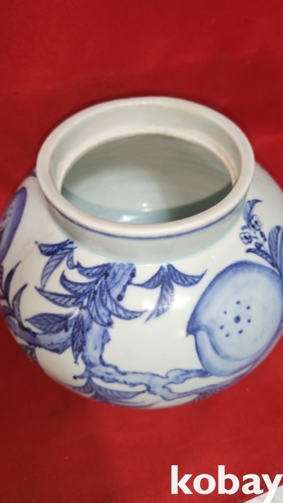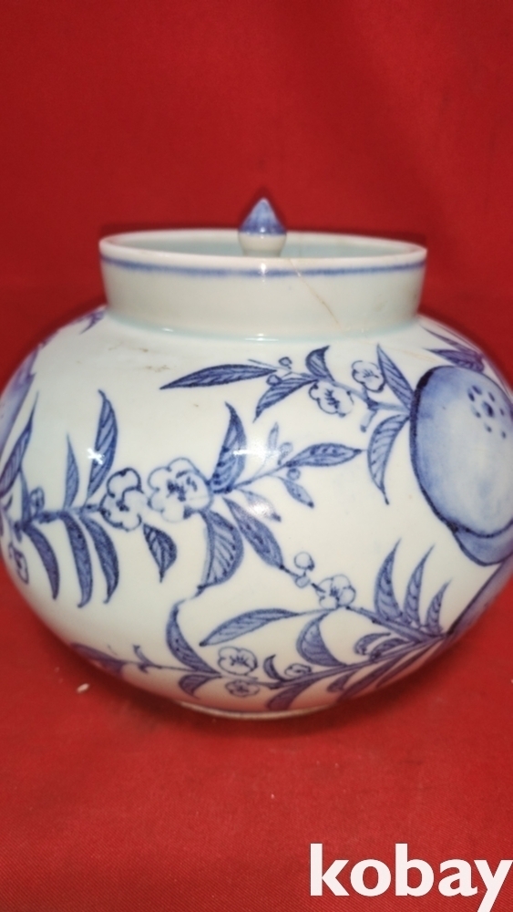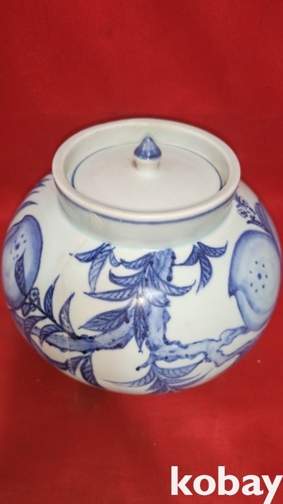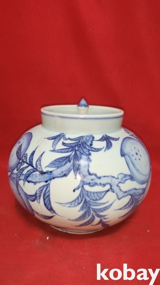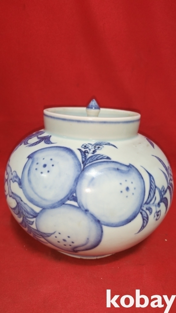 구한말 청화백자 천도 복숭아 문양 유개 항입니다,