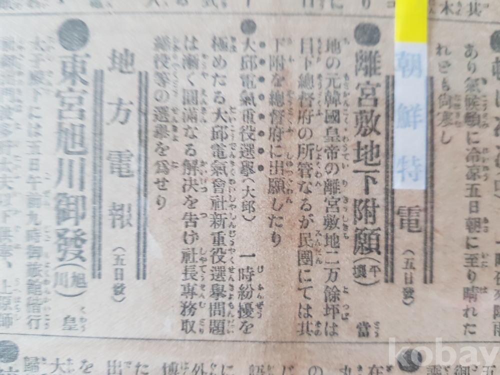 [EE70]*東京日日新聞/1911.9.6./朝鮮特電.離宮敷地下附願(평양),대구전기중역선거(대구)