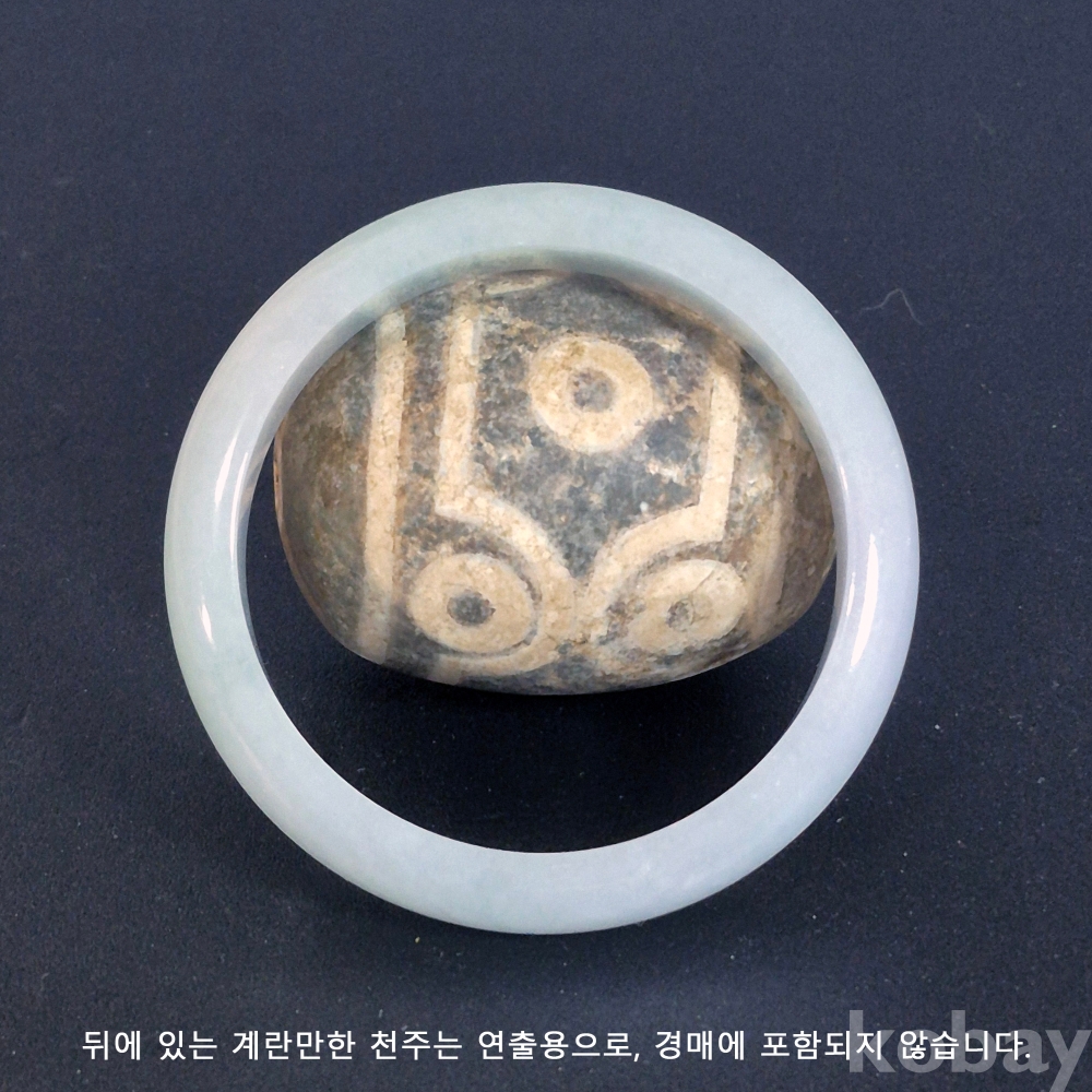 은은한 옥색 빛이 나고, 중간 중간에 녹색이 짙은 부분이 있는 아름다운 천연 비취 입니다.