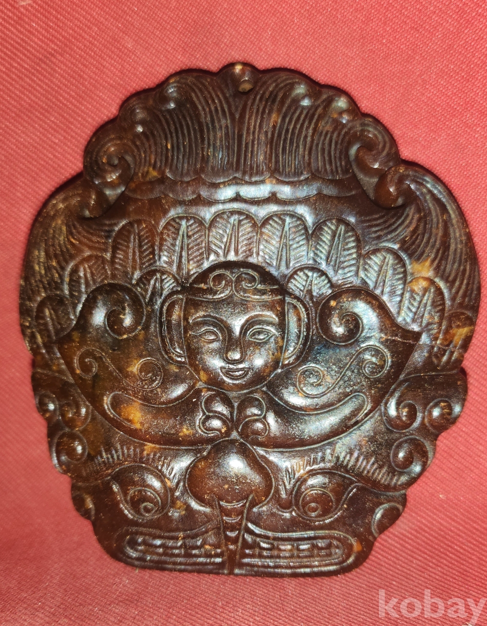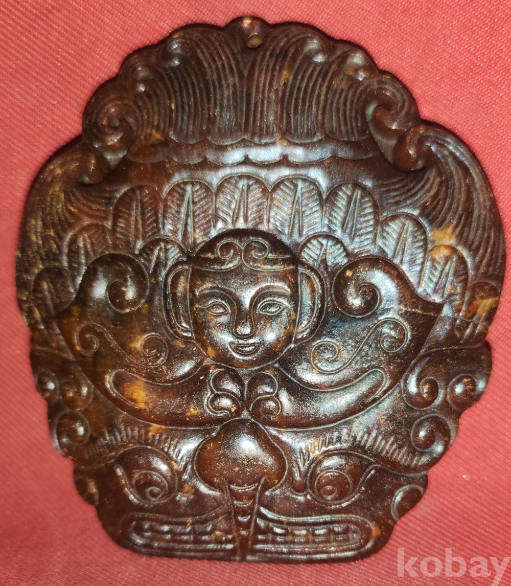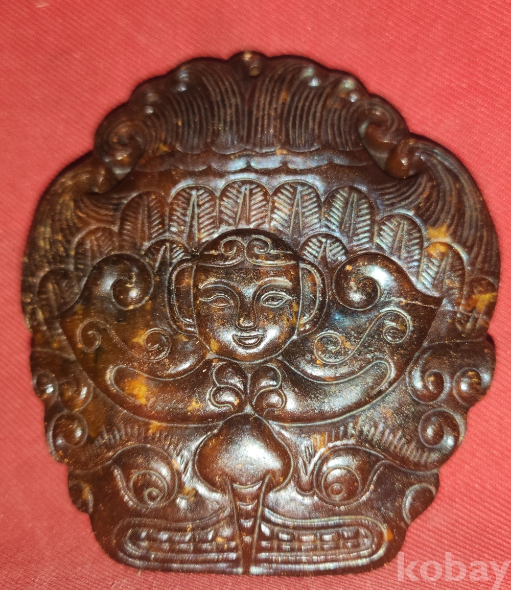 황옥(黃玉)으로 완성된 인물 문양 패입니다,