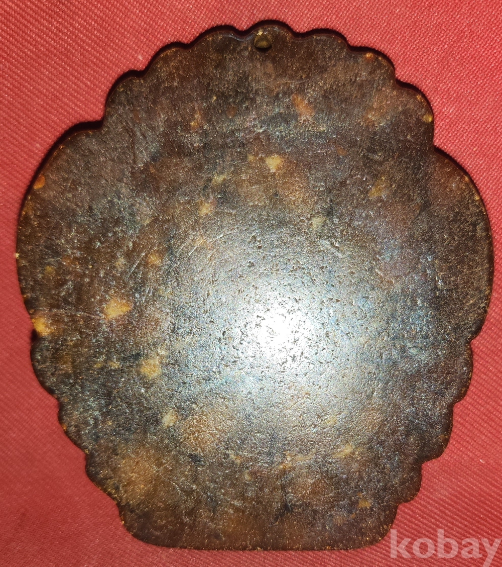 전면에는 투각 용문양이 투각으로 자리하고 상단부에응 구멍이 있어서 실을 꿰어 팬던트로 사용 할 수 있는 기능입니다,