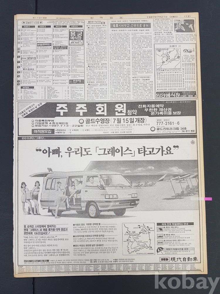 **** 1987.07.21(한국일보)/현대자동차 그레이스 광고포함/약 12면