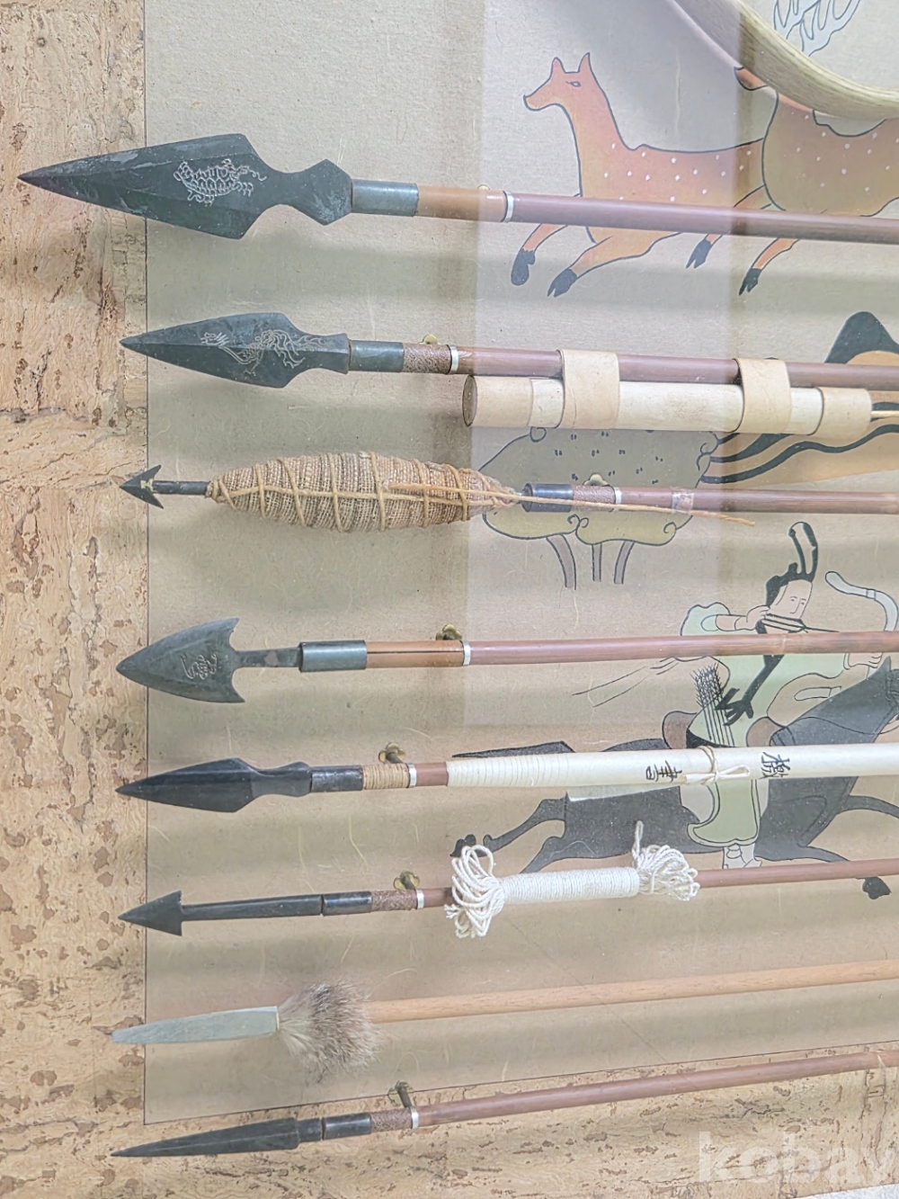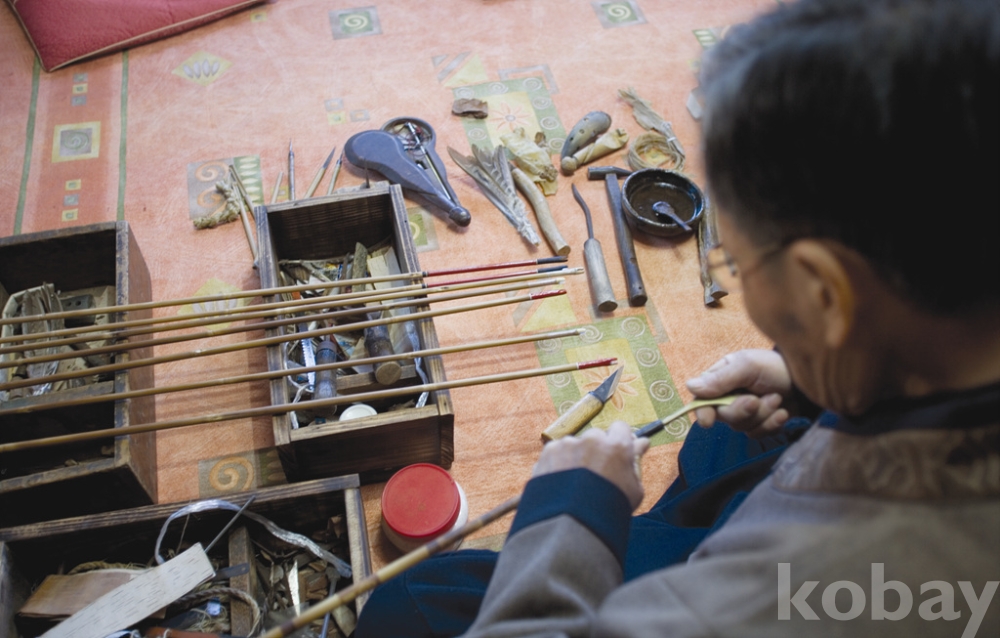 인간문화재로 알려져 있는 국궁 기능보유자 유영기 선생의 활과 화살입니다.