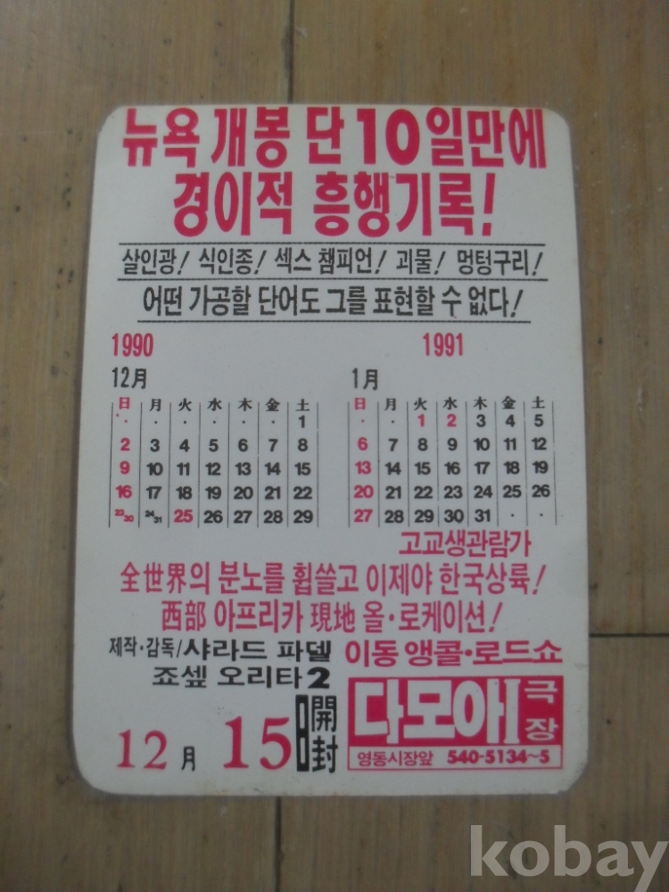 1246h)90년 영동시장 앞 다모아극장 상영 영화카드[이디아민]