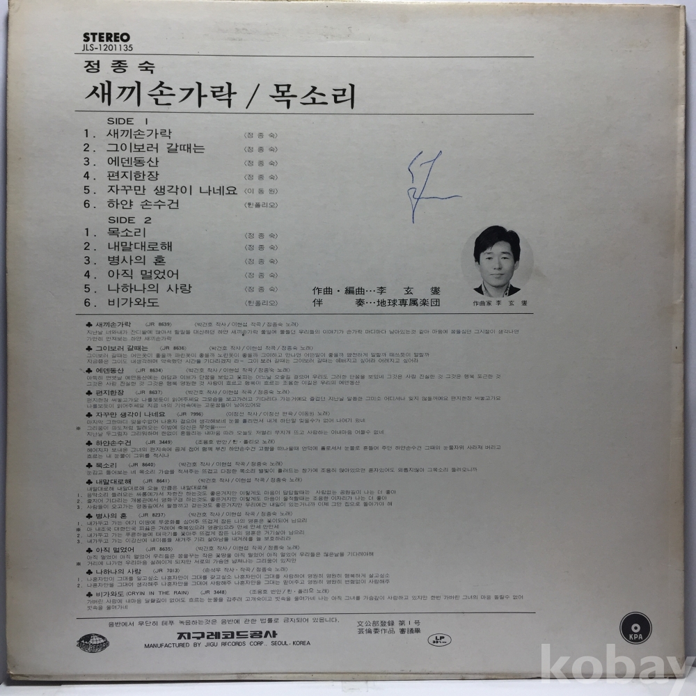 LP 82,000-48 정종숙 - 새끼손가락/ 목소리 자켓 EX 알판 EX+ 78 년 국내반