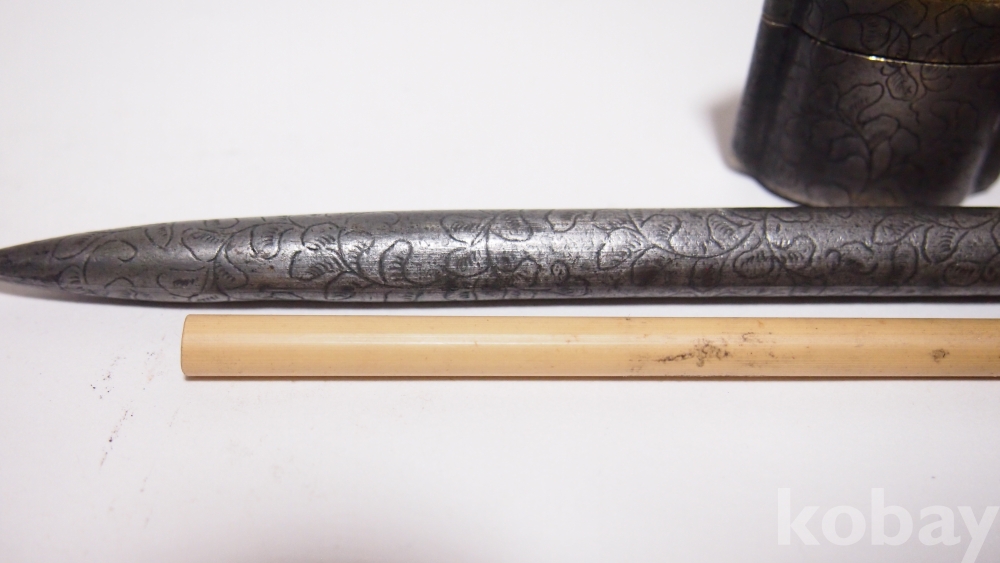 상품명 | 금속 공예품 / 초화문 음각 / '휴대용 동 붓통과 먹통 세트' | ||