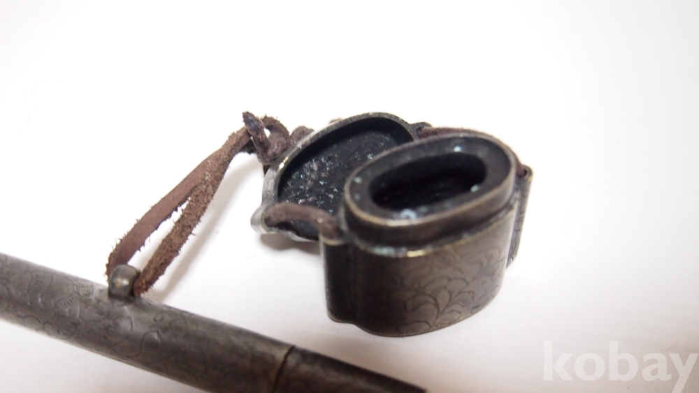 상품 설명 | 일정시대 고위 관리들이 사용했던 초화문 음각 휴대용 동 붓통과 먹통 세트입니다. | ||