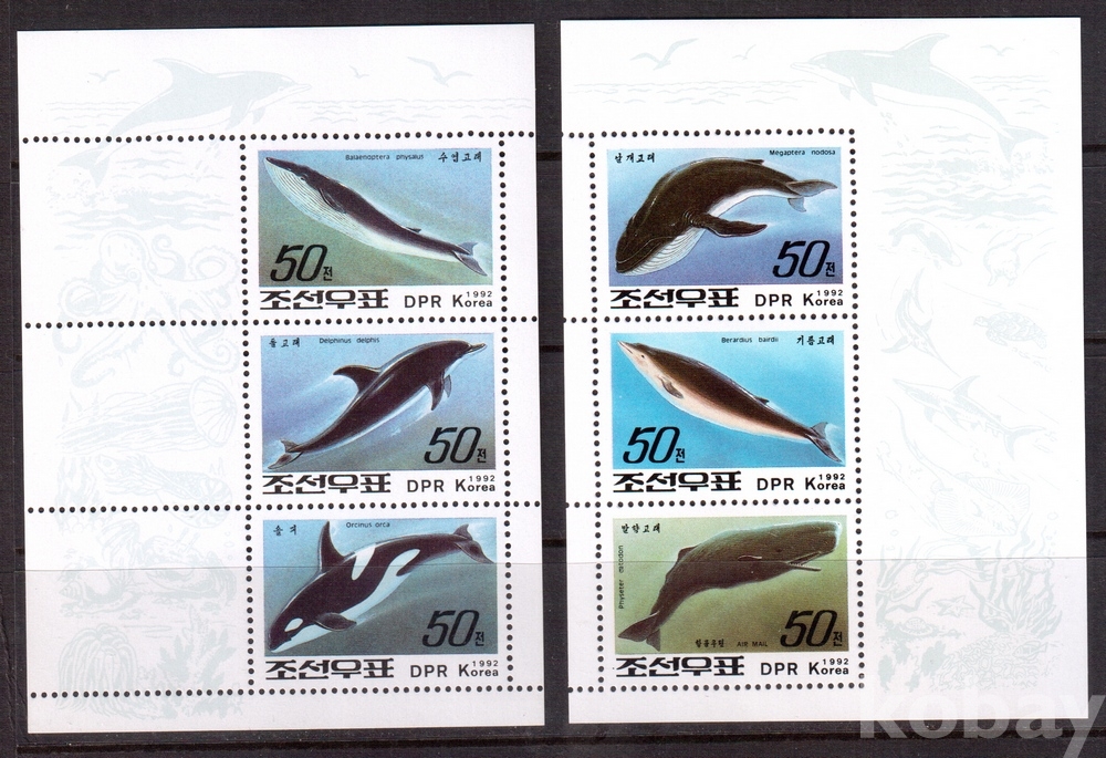 (바다동물) 북한 1992.10.20 고래 2 sheetlet of 3 MNH