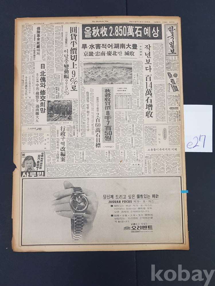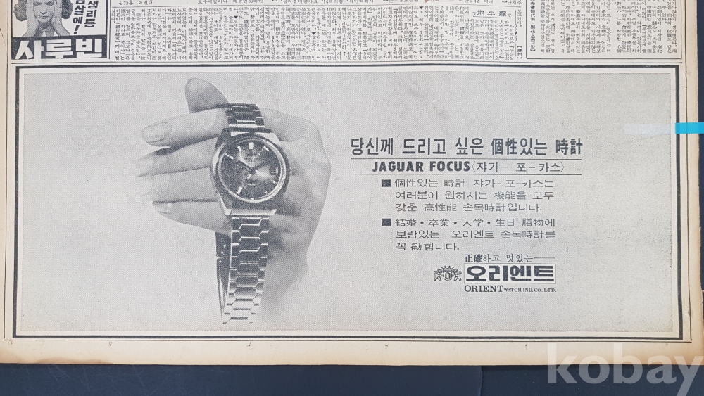 **** 1971.11.05(한국일보)/오리엔트 쟈가-포-카스 손목시계 광고 등/8면