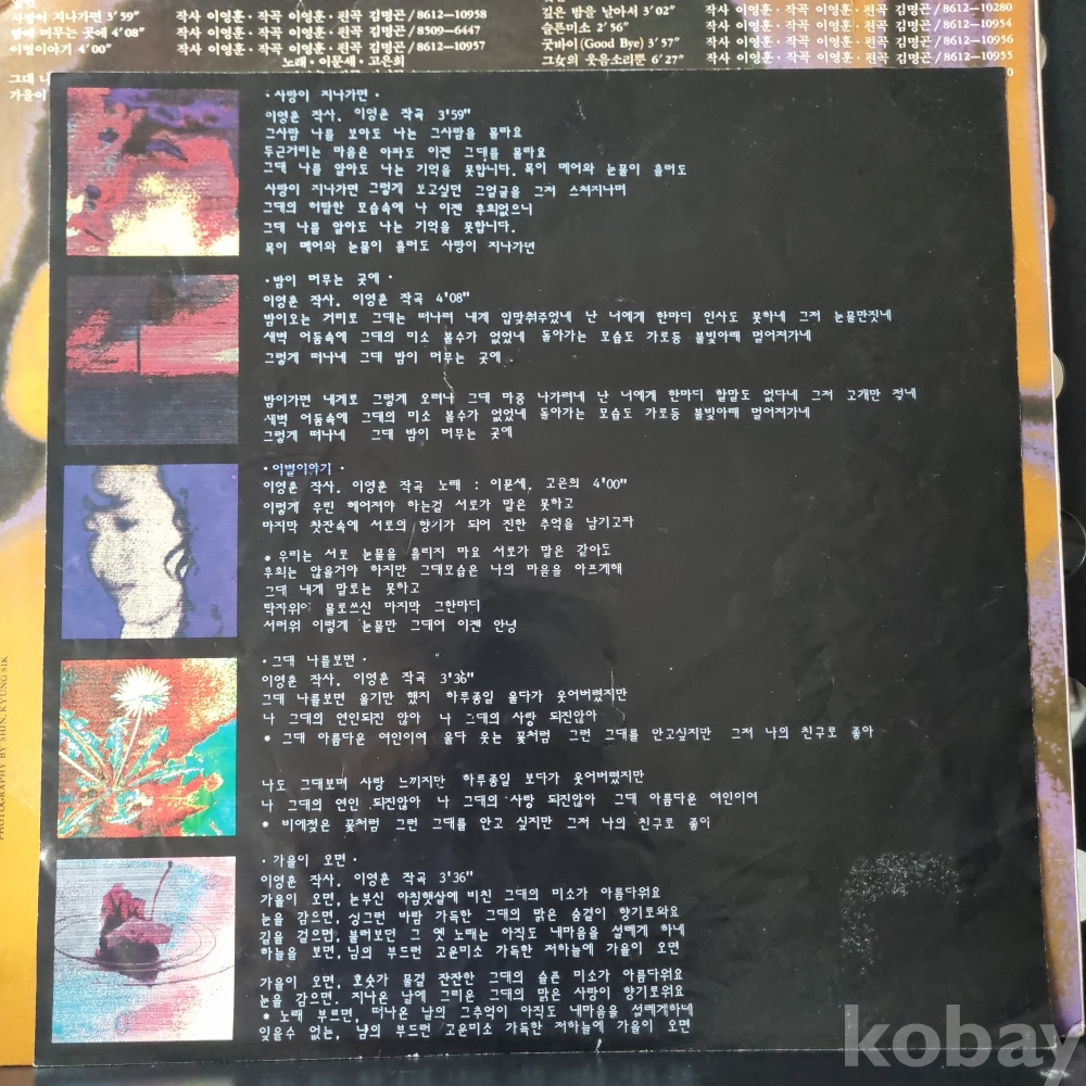 | 자켓상태 | EX : 약간의 마모, 모서리 찢김 존재 | 음반상태 | EX : 재생에 영향 없는 가벼운 기스 존재 | 발매정보 | 초반 | 가사지여부 | 유 |