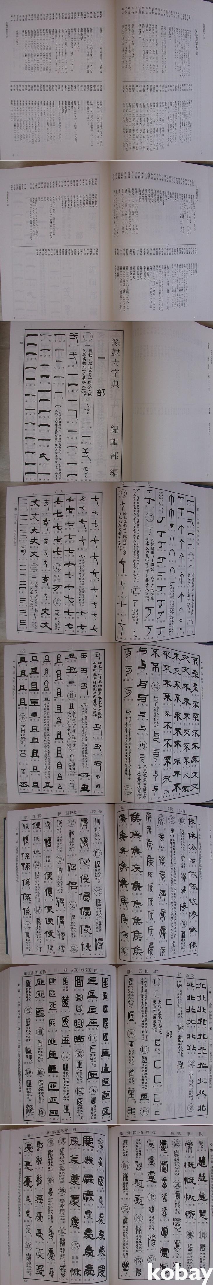 면지에 <부수색인>이 있고, 내표지에 이어 편집부의 <서>에서 최근 활발해진 서예가와 전각가들에게 도움이 되도록 청인들이 필법을 부흥시키며 금석고증학을 발전시켰던 데에서 "청대 초부터 청대말, 민국 초에 이르는 전서와 예서의 명가 221명의 표제자 1만1천 자, 총 수록 자수가 7만자에 달하는 풍부한 내용과 방대한 분량을 수록"하였다고 하였다. <예언>이 있고 <수록서예가년표>가 있다.