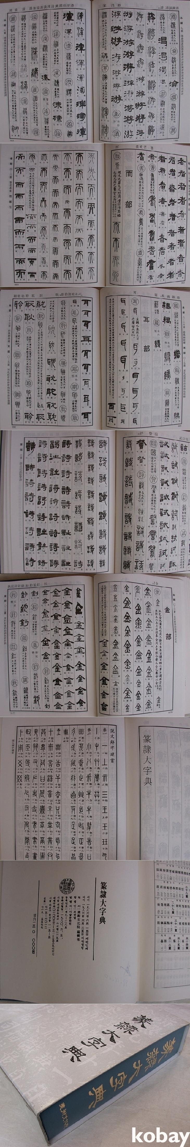 본문은 7행씩 계선을 두고 획수순으로 실었다. 서예가를 글자 아래 밝힌 가운데 전서를 먼서 싣고 예서를 나중 실었다. 본문 난 상단에 표제어의 인쇄체를 실어 놓았고 좌우측 난외에는 색인용 글자를 인쇄체로 실었다. 뒤에 <설문해자건수>와 <총획색인>이 있다. 뒤 면지에 이전 소장자의 흔적이 남아 있다. [lake21]