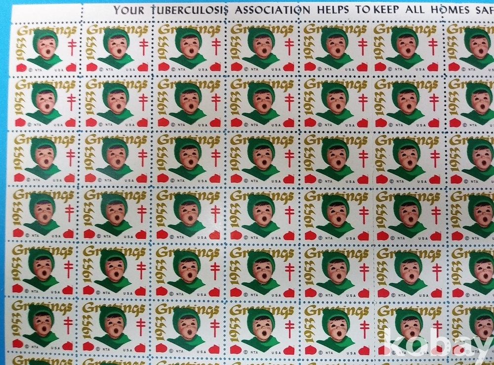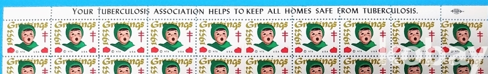 ▶ 미국 크리스마스 씰 전지 10매 (1953년)