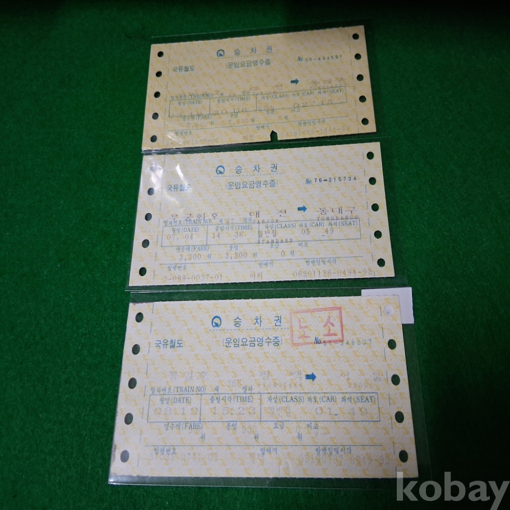 국유철도 새마을,무궁화,통일호 승차권3매 사용제