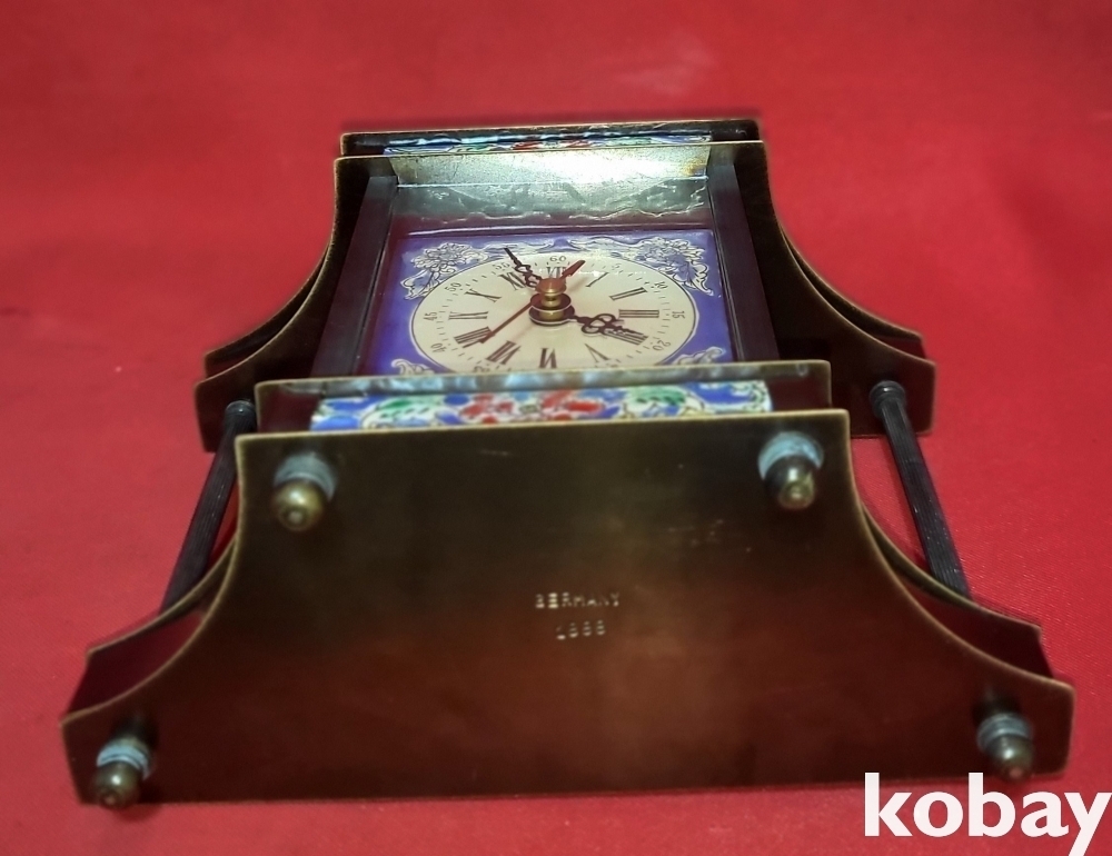 1888년 Germany (독일) 표기가 선명한 적동 칠보 화훼문양 테엽식 탁상 시계입니다,