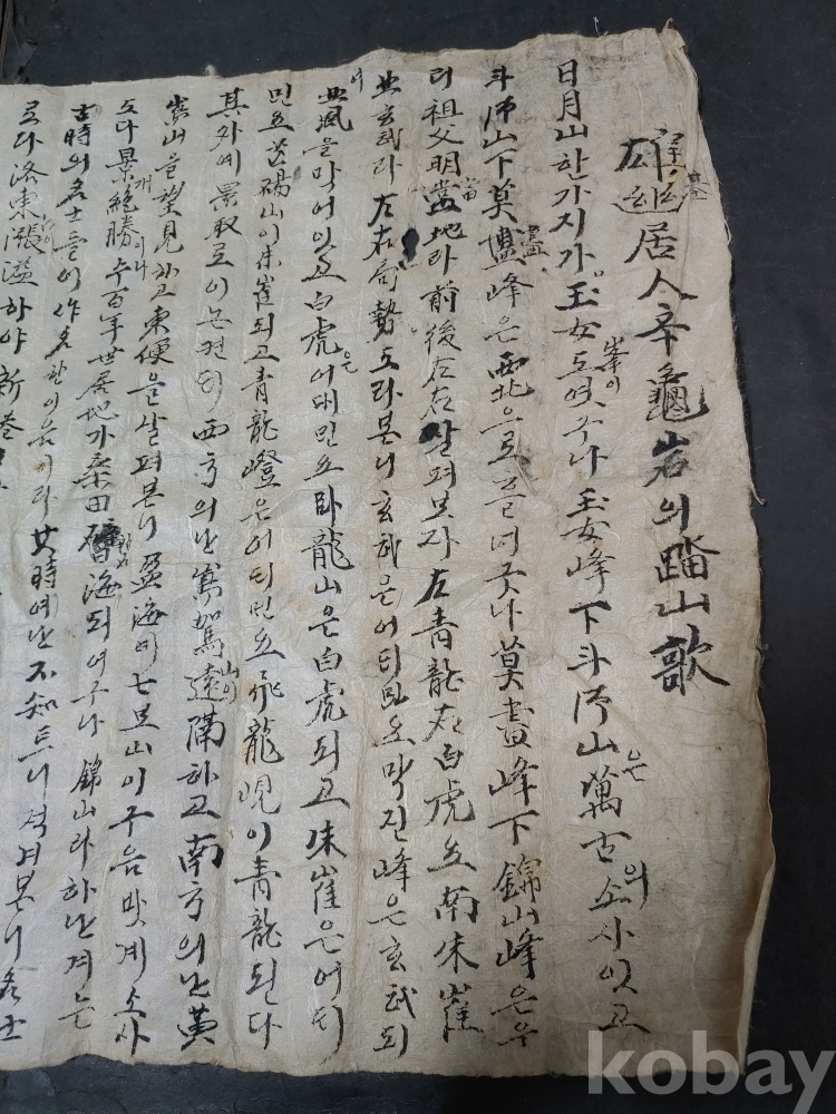 ""日月山 한가지가...로 시작을 하는 고 필사본 한글가사"" 2번