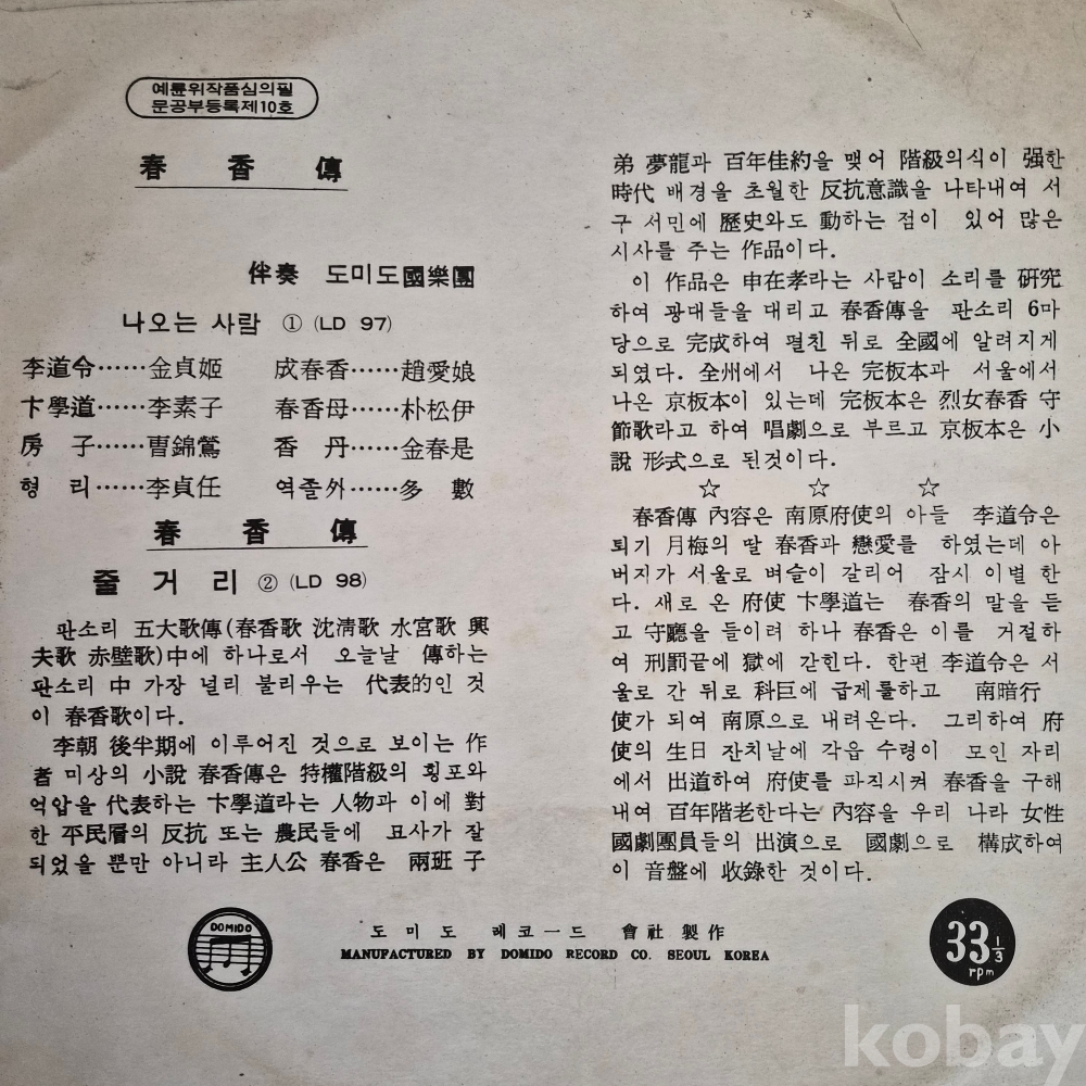 [추억의 희귀 LP 기획전] (춘향전) 2LP / (이도령:김정희/성춘향:조애랑)