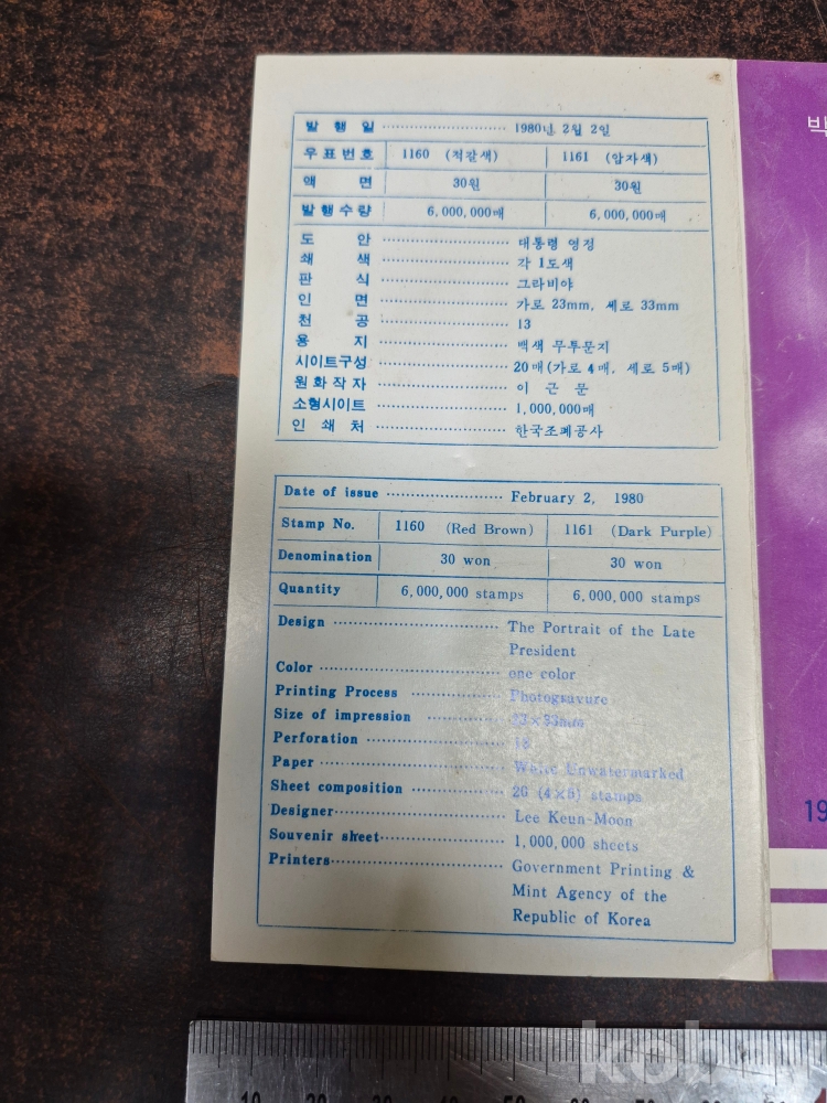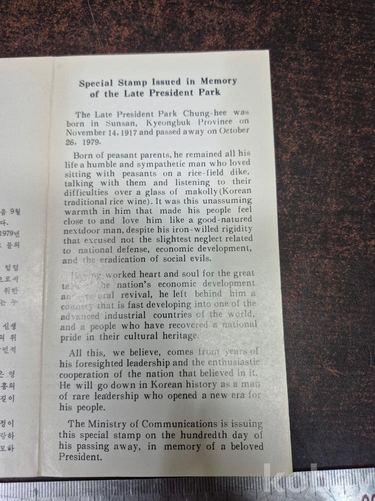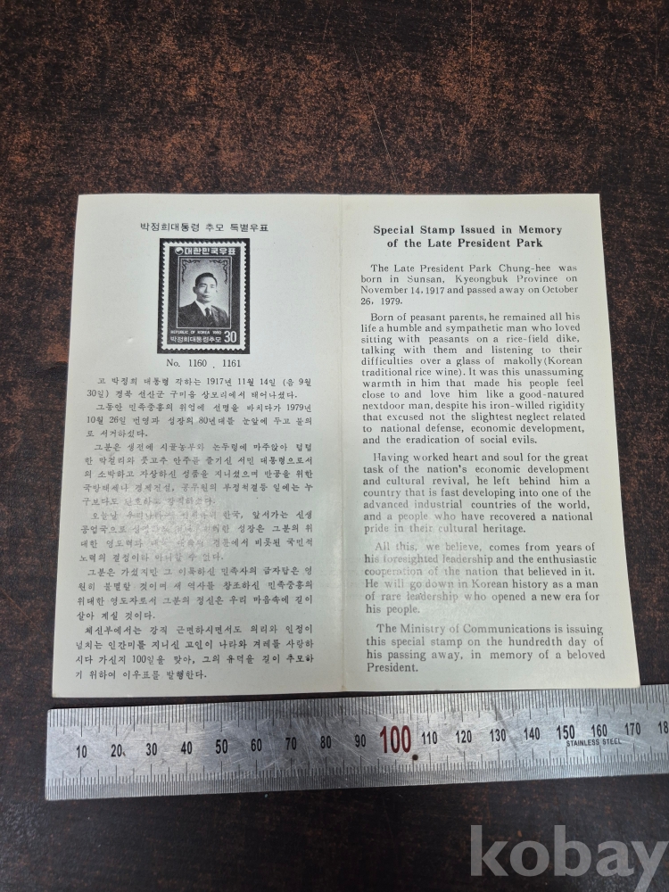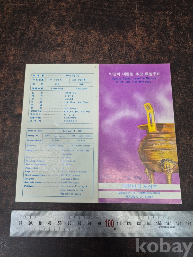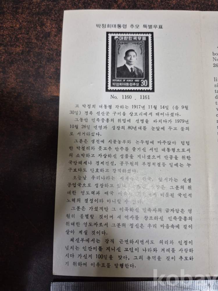 1980년 박정희 대통령 추모 특별우표 발행 팜플렛 대한민국 체신부 17*16