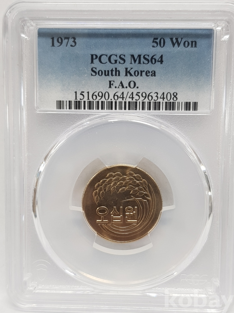*천원경매* 준특년도 1973년 50원 / 50주 PCGS MS 64 그레이딩 인증 주화 [ 화폐 / 한국은행 / 현행주화 / 주화 ] #12(주)-1219 #CO #HH