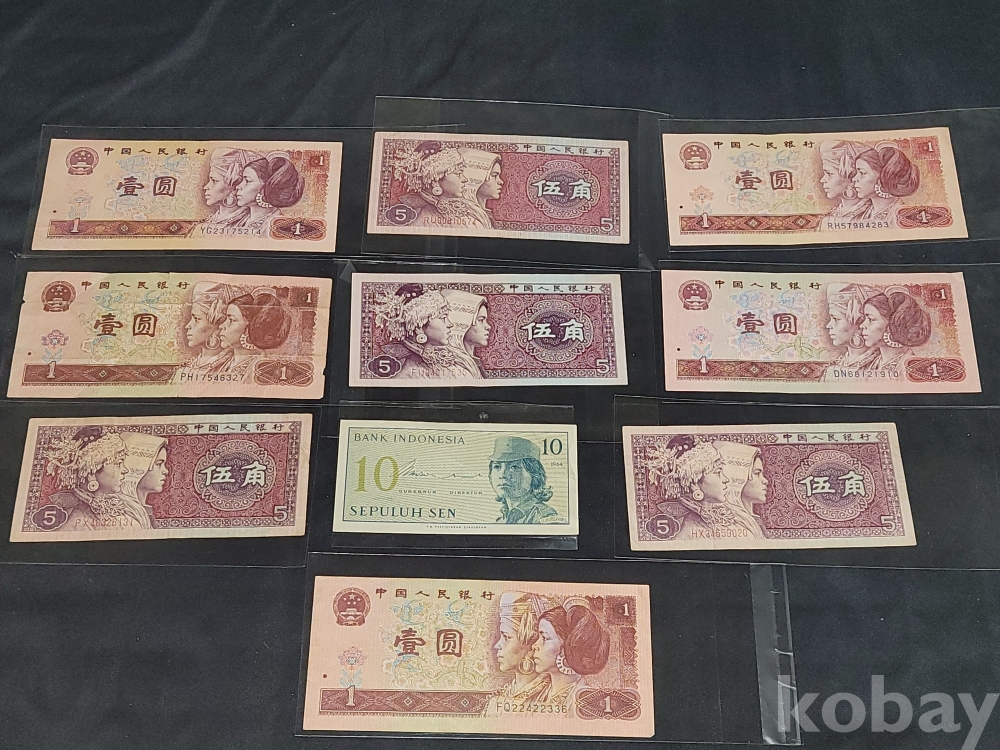 빈티지 중국 위안 등 각종 외국 구권 지폐 화폐 10장 일괄입니다.