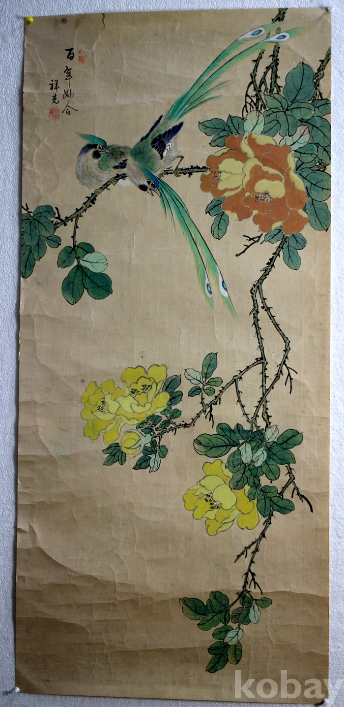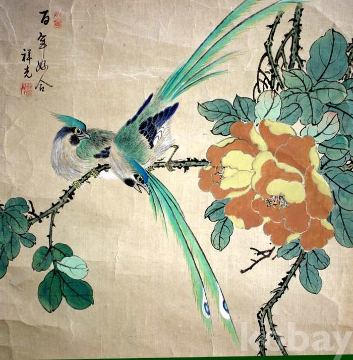 중국작가 祥光(상광)의 화조도 - 모란과 새