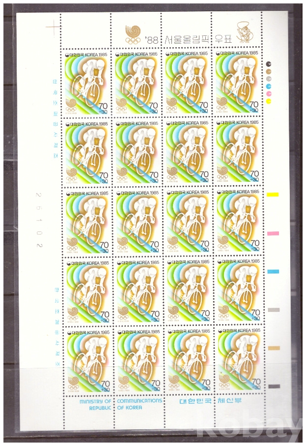 (서울올림픽) 1985.11.1 '88 서울올림픽(제4집) 2완 sheet of 20 MNH