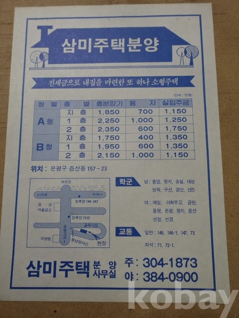 1243h)80년대 서울 증산동 1,000~2,000만원대 (삼미)주택분양 전단지.