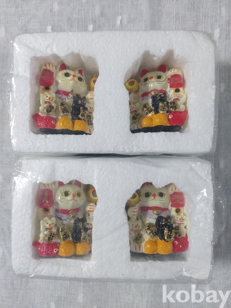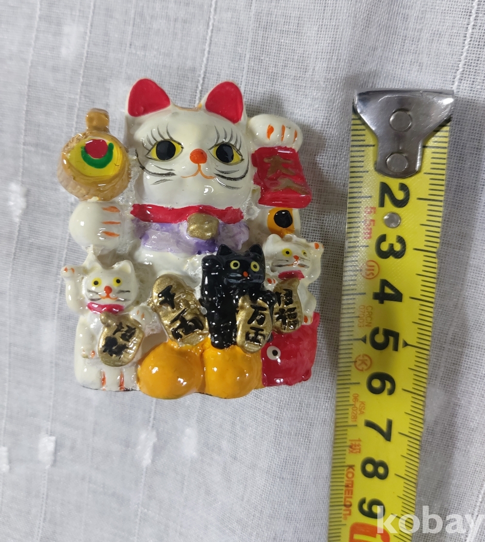 본 물품은 고양이 형상을 중심으로 여러 소형 고양이와 장식 요소가 함께 구성된 미니 장식품 세트이다. 밝은 색감과 유광 마감이 사용되어 전체적으로 입체감 있는 형태를 이루고 있다. 소형 오브제로 진열용이나 인테리어 장식에 적합한 크기이다.