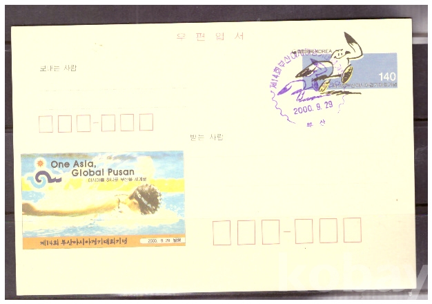 (기념엽서) 2000.9.29 CPC110 제14회 부산 아시아경기대회 (140원) (기념초일인)