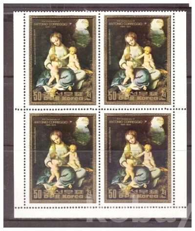 (미술) 북한 1983.12.12 꼬레죠 서거 450돐 block of 4 MNH