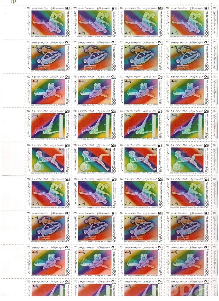 (서울올림픽) Iran (이란) 1988.9.10 축구 전지(10x5) full sheet of 50 MNH (반접음)