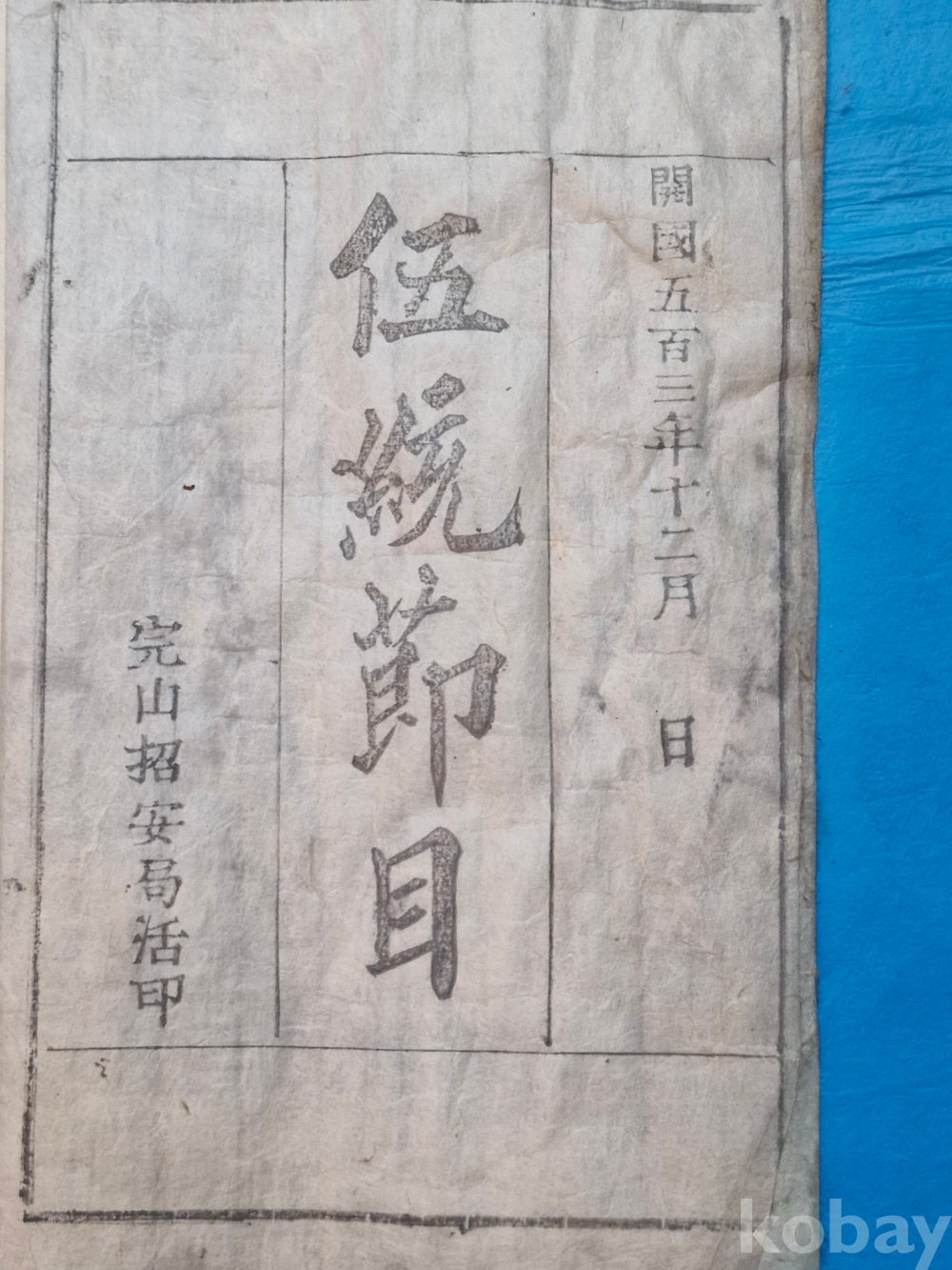 개화기인 개국503년(1894)년에 발행된 오통절목 입니다