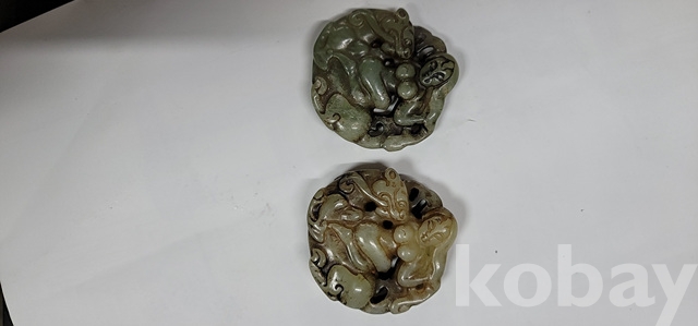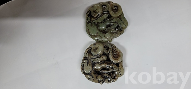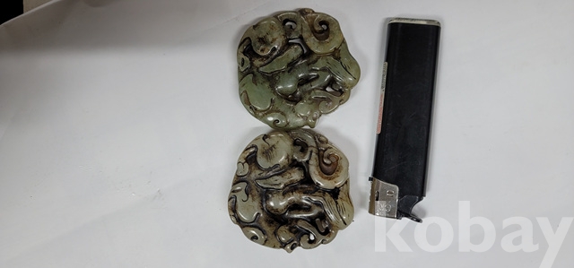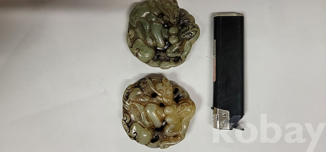 h-39-1고급 수산옥으로양면으로깍아만든 여인상 2개일괄
