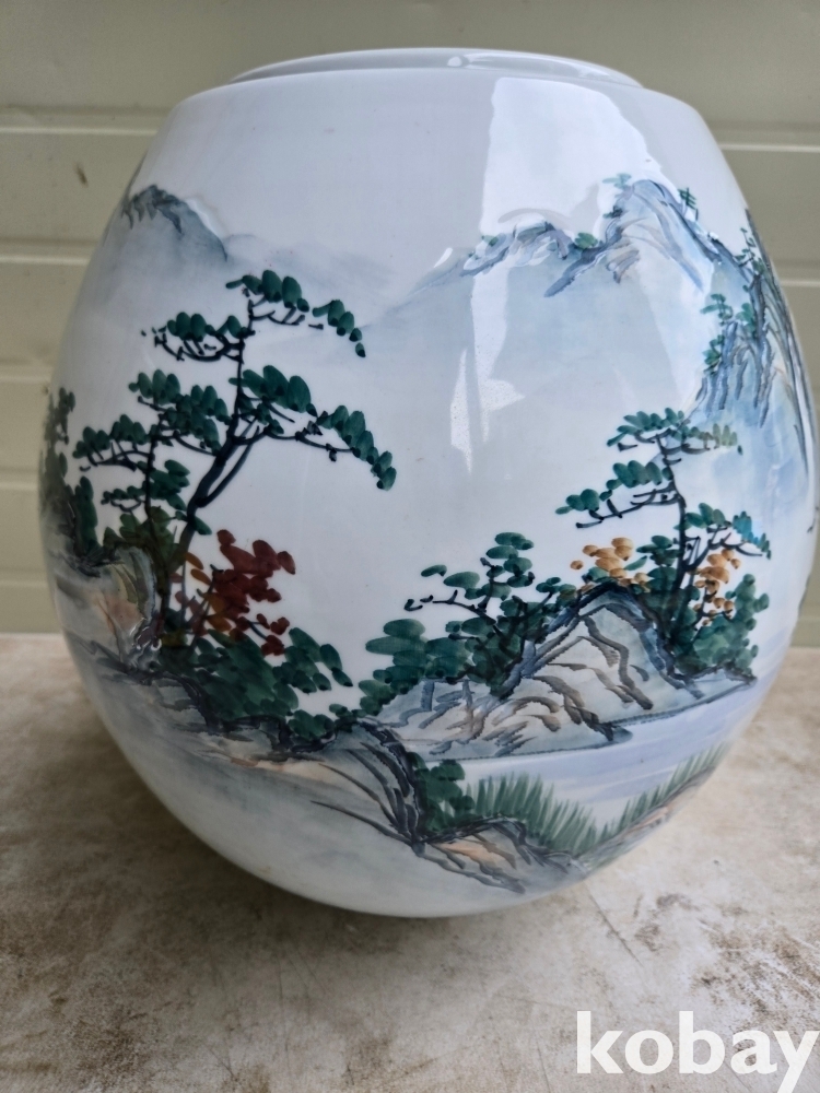 산수 풍경을 아름답게 표현한 도자기 입니다.