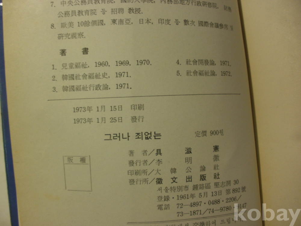 그러나 죄없는 - 송우영 선생님, 지은이 구자헌 드림 친필 (1973년, 구자헌 저, 미문출판사)