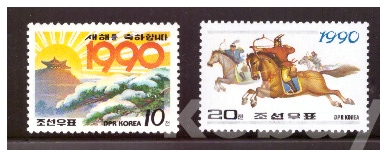 (새해) 북한 1990.1.1 주체79(1990)년 새해우표 2완 MNH