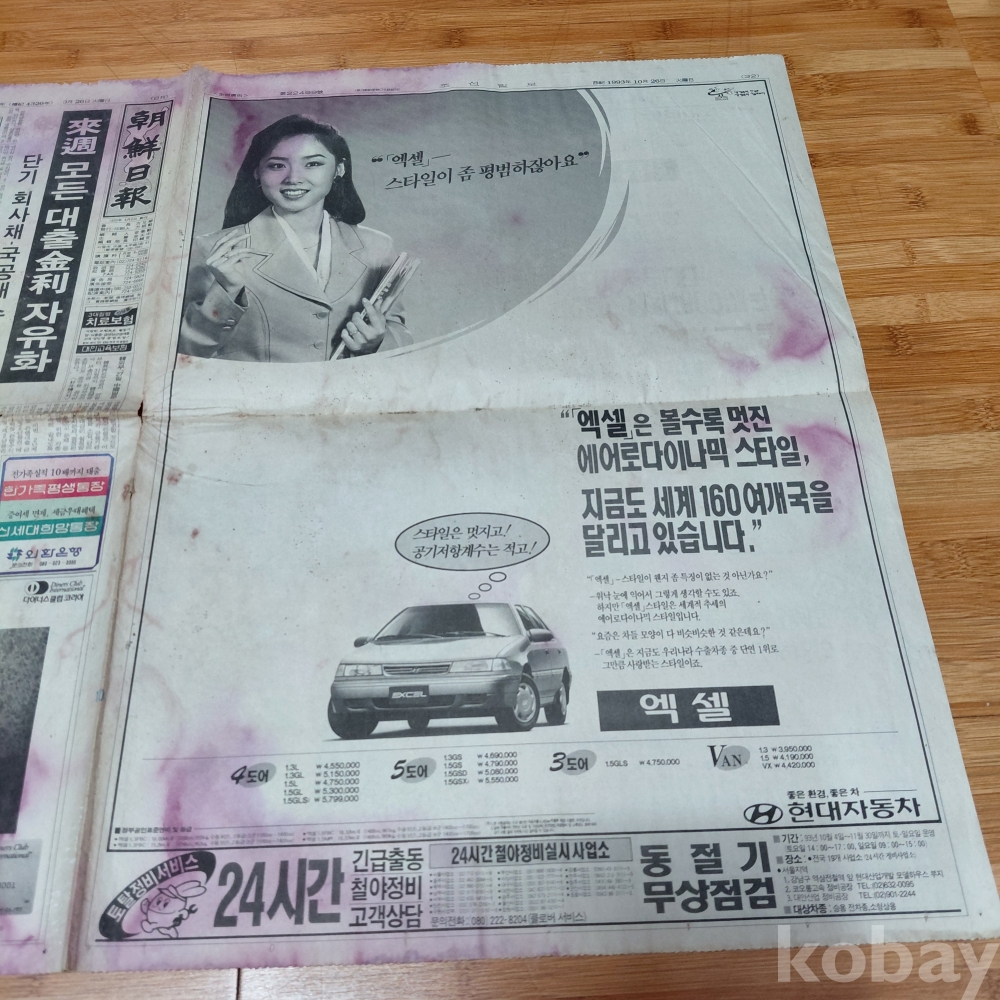 현대자동차 엑셀 승용차 광고 조선일보 93년10월26일 올려드립니다