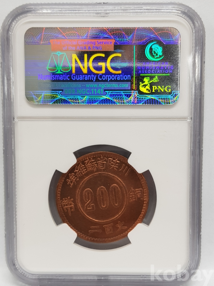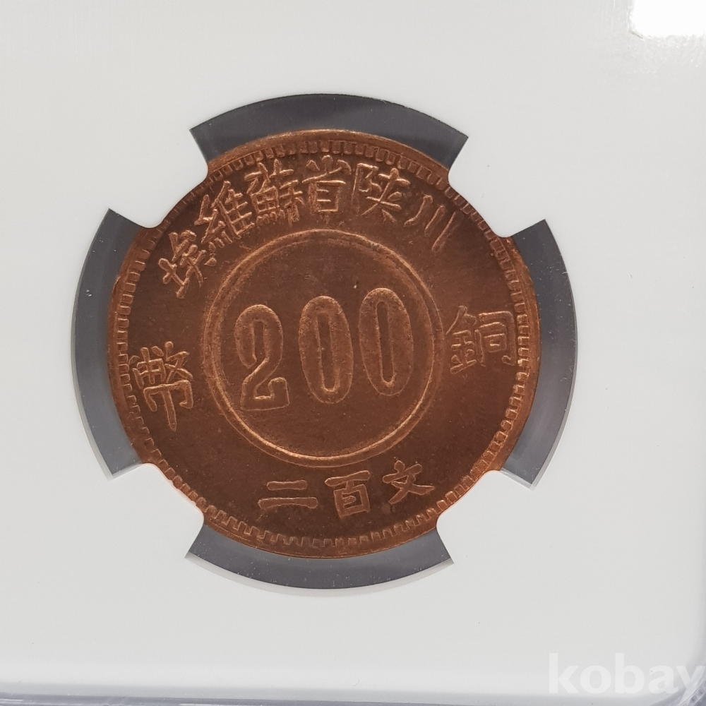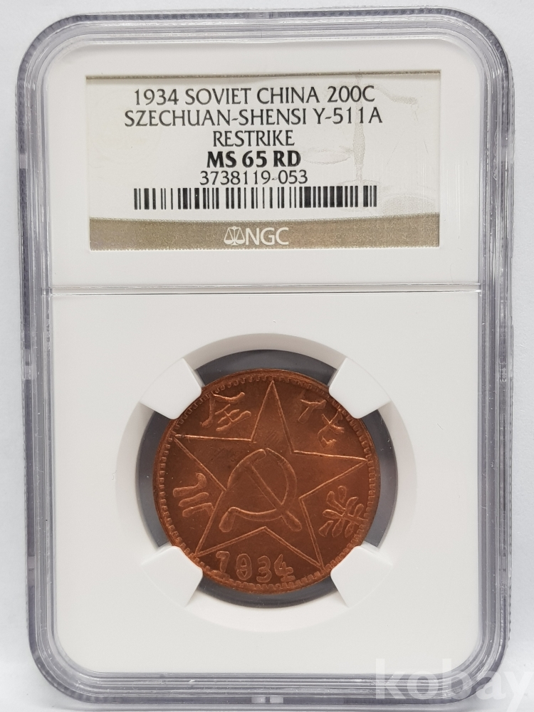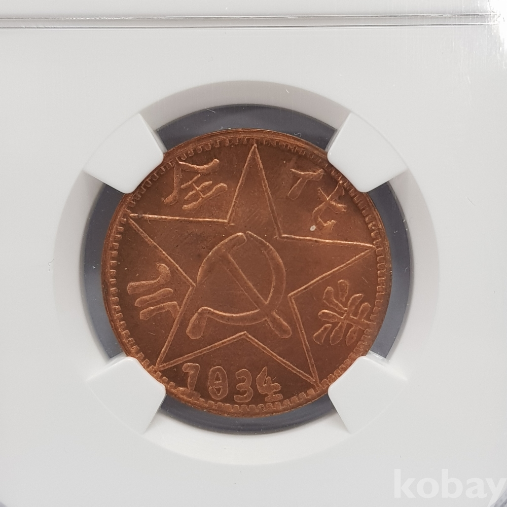 - 1934년 소비에트 중국 사천 200문 주화 NGC MS 65 RD 그레이딩 주화