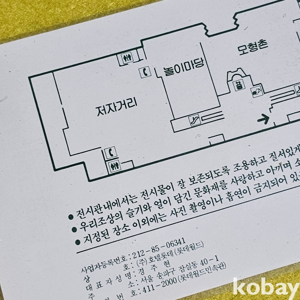 (((근현대사자료/입장권/관람권))) 오래전 롯데월드민속관입장권 (중고생 2500원)
