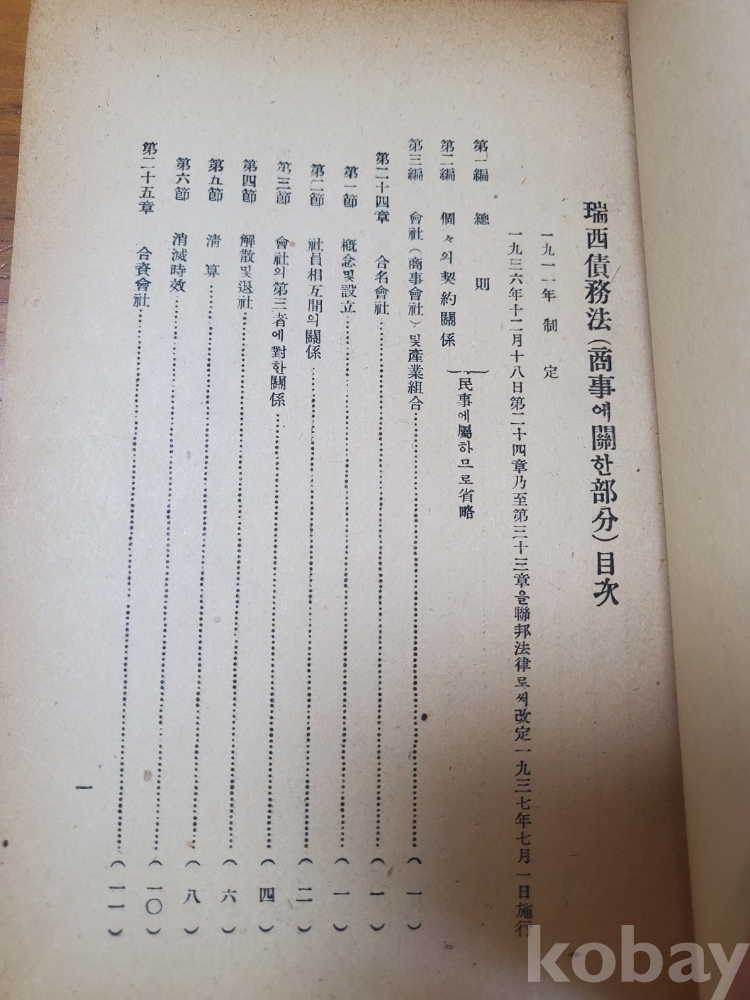 1. 법무자료 제12집 - 서서채무법전, 법무부조사국, 1949년, 252쪽, 상태 상, 사진 참조