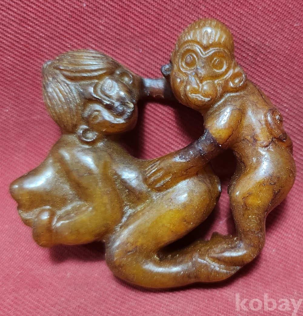 홍옥(紅玉)으로 완성된 인물(人物) 문양 조각품입니다,
