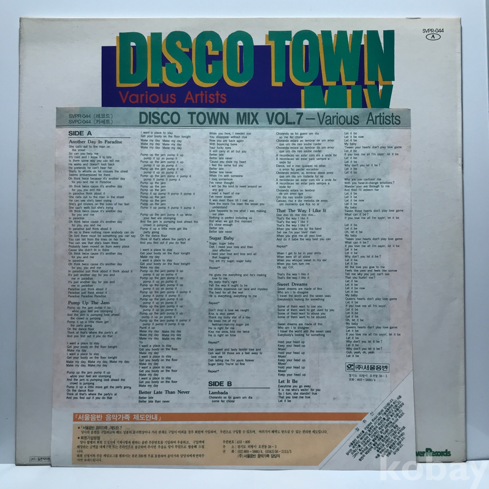 LP 10,800-55 DISCO TOWN MIX 7 90 서울 자켓 EX+ 알판 EX+